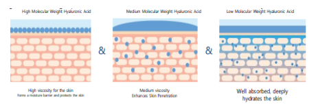 Combining low – molecular – weight & high – molecular – weight hyaluronic acid to provide dense hydration to the skin high – molecular – weight – particles create a firm, unbroken moisture barrier for even more hydrated care.