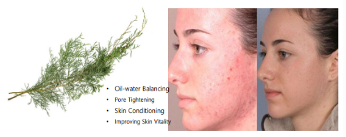 Tea tree, which started as a remedy for colds, headaches, and wounds, has excellent soothing effect on the skin, gently calming sensitive skin. It is particularly effective in improving inflammatory skin issues such as excessive sebum and trouble.